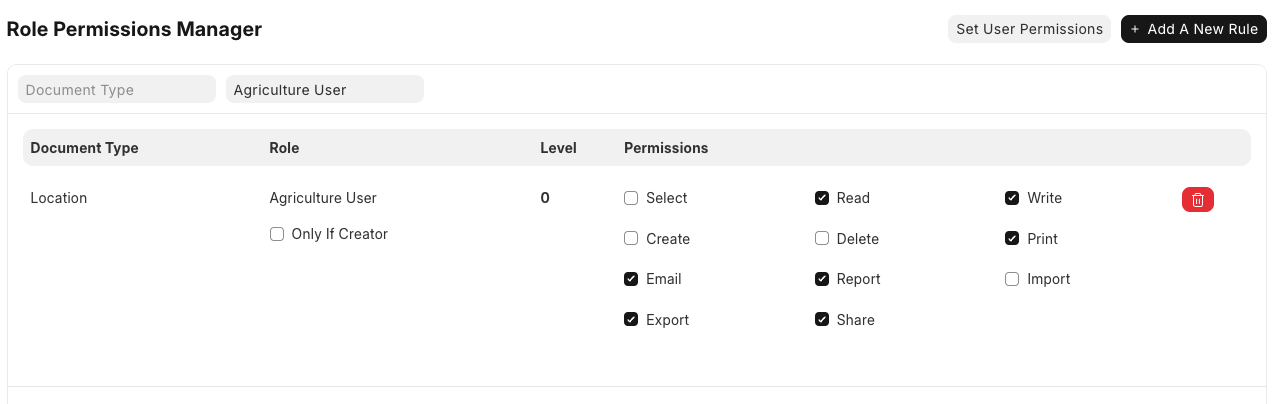 - 4. Selain dari Manajer Sistem, peran dengan Set User Permissions dapat mengatur izin untuk pengguna lain untuk Tipe Dokumen tersebut.